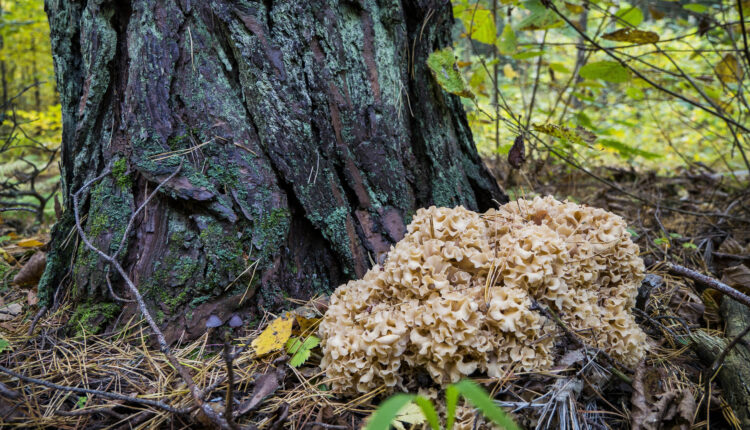 Die Krause Glucke kenne ich auch unter dem Namen „Fette Henne”. Dieser schwammähnliche Pilz lebt parasitär und ist sogar essbar. Mein Exemplar habe ich aber am Fundort stehen gelassen. Die ungewöhnlich großen Fruchtkörper sind gar nicht mal so selten, so das einige Exemplare sogar bis zu 5 Kilogramm wiegen können.